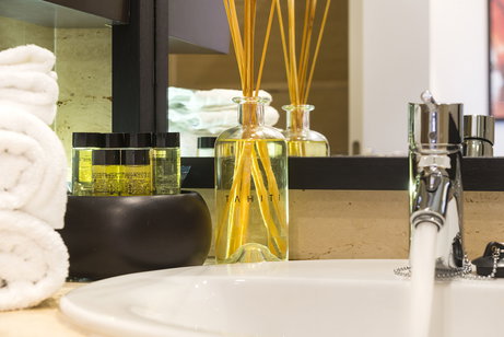 All rooms have a fully equipped bathroom that includes a combination of luxury bathtub/shower amenities Rituals and Anyah brand, Produced from raw materials caring the environment and helping to reduce Co2 emissions.