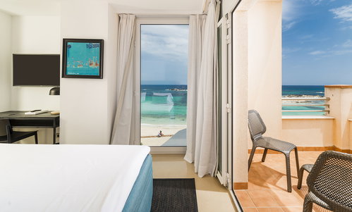 Bright and outward facing rooms, overlooking Punta Prima and Es Pujols, distributed in two floors (1st and 2nd) measuring approximately 22m2 with a sea view balcony/terrace of 8 m2 and totally refurbished. Most suitable for couples, each room has your choice of one king or two twin beds side by side.